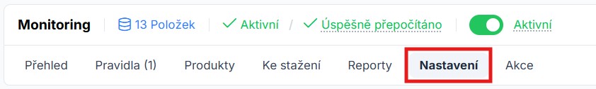 **Průměrná cena konkurence** – je vypočítaná z cen konkurentů, které jsou zvolené na záložce Nastavení