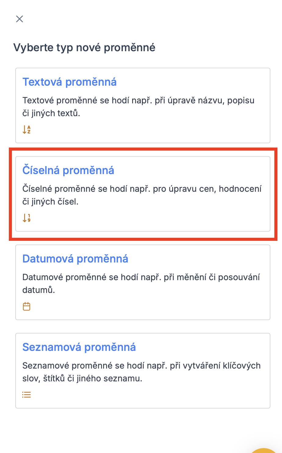 Nyní je nutné pouze vytvořit námi požadovanou proměnou. Klikneme tedy na tlačítko „Vytvořit *proměnnou*“.
