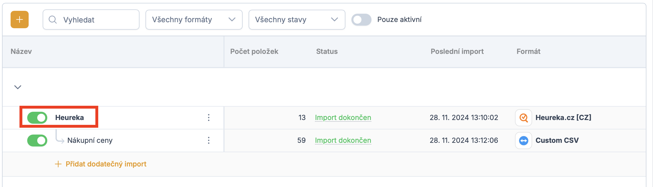 V přehledu importů nejprve vyberte ten, ve kterém chcete vytvořit danou proměnnou, a klikněte na něj.