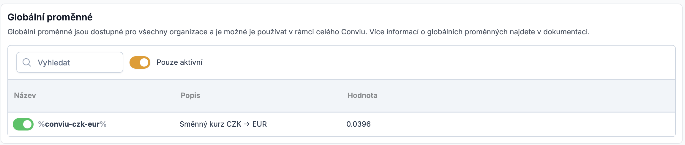 Jak to vlastně funguje? Conviu se každý den připojí k ČNB a stáhne aktuální kurzovní lístek. Následně přepisovacím pravidlem nahradíte pevně vyplněný kurz ve vašem feedu za proměnou. K tomuto účelu slouží globální proměnná, kterou zapnete v detailu svého importu. Z této globální proměnné následně vytvoříme novou proměnnou, kterou můžete používat napříč celou aplikací Conviu.
